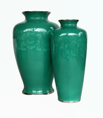 Ando Jubei Japanese wireless cloisonnè green celadon vase Chrysanthemums